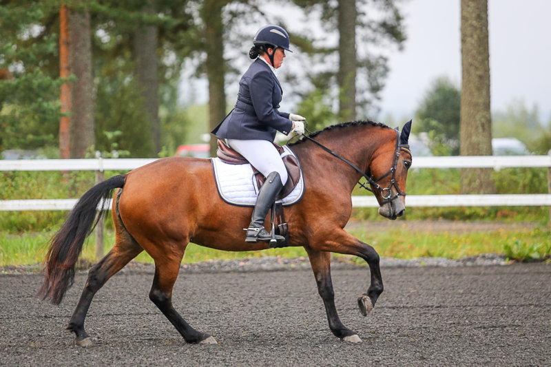 Ratsuna Venla on suorastaan upea! Se on melko tavanomainen suomenhevonen eikä taivu vaativille radoille, mutta oman kapasiteettinsa rajoissa Venla suorittaa aina sata lasissa. Se ei turhaudu, vaikka jokin piruetti ei osuisikaan ihan kohdilleen, tai jos ratsastaja ei oikein itsekään tiedä, mitä haluaa. Venla kokeilee yhä uudestaan ja uudestaan hyvällä motivaatiolla, kunnes haluttu lopputulos on saavutettu. Tamma on halukas oppimaan uutta, ja sen kanssa onkin mukava treenata pikkuesteitä ja vaativampia koulukiemuroita mielenvirkistykseksi.